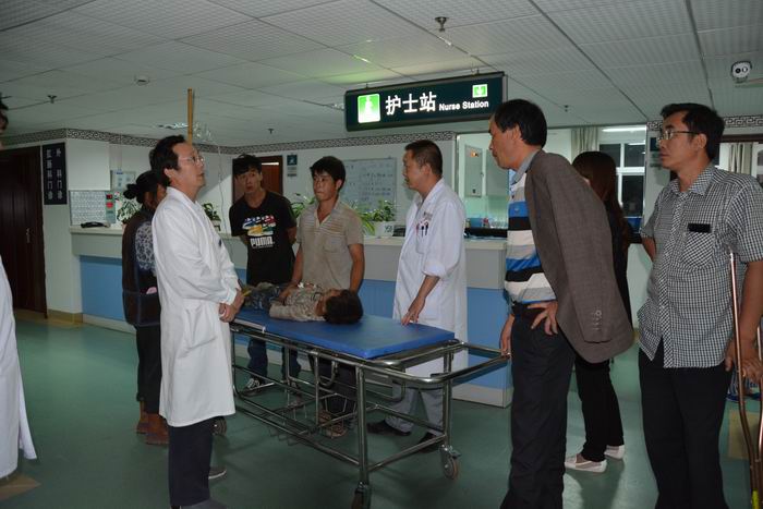 2014年8月5日,省衛(wèi)生廳鄭副廳長、市衛(wèi)生局唐局長、會澤縣衛(wèi)生局吳局長親自到會澤縣中醫(yī)醫(yī)院看望受傷患者,細(xì)心慰問患者病情并給患者做心理輔導(dǎo)。