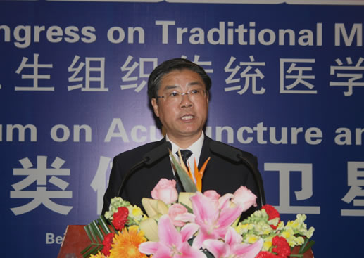 尊敬的大會主席、各位來賓、各位代表: 在世界衛(wèi)生組織成立60周年和《阿拉木圖宣言》發(fā)表30周年之際,世界傳統(tǒng)醫(yī)學(xué)大會今天上午隆重開幕了,由世界針灸學(xué)會聯(lián)合會主辦的針灸與人類健康衛(wèi)星研討會也勝利召開了,這次會議為各國交流與分享針灸發(fā)展的經(jīng)驗和體會提供一個了良好的平臺,對于推動針灸納入各自國家醫(yī)療保障體系、規(guī)范針灸教育、加強針灸國際標(biāo)準(zhǔn)建設(shè),共同促進針灸事業(yè)的發(fā)展,意義重大而深遠。我謹代表中國國家中醫(yī)藥管理局,對這次衛(wèi)星會的召開表示熱烈的祝賀!向出席會議的各位朋友表示親切的問候并致以良好的祝愿! 世界針聯(lián)成立以來,在世界衛(wèi)生組織的支持下,為推進實施世界衛(wèi)生組織傳統(tǒng)醫(yī)學(xué)戰(zhàn)略,積極在世界范圍內(nèi)宣傳和推廣針灸醫(yī)學(xué),在針灸教育、針灸考試、針灸標(biāo)準(zhǔn)化等方面,做了大量工作,為促進針灸醫(yī)學(xué)發(fā)展做出了巨大努力,取得了顯著成效。值得贊賞。 針灸學(xué)是中國傳統(tǒng)醫(yī)學(xué)中最具特色的非藥物治療方法之一,凝聚著中華民族的智慧。隨著針灸在國際上的廣泛傳播和發(fā)展,越來越多的國家政府開始關(guān)注和重視針灸在防病治病中的重要科學(xué)價值,支持針灸醫(yī)學(xué)的發(fā)展,一些國家和地區(qū)開展了針灸的立法實踐,一些國家和地區(qū)將其納入了醫(yī)療保障體系,越來越多的民眾接受針灸服務(wù),針灸在維護和增進人類健康中的作用日益增強。 中國政府歷來高度重視包括針灸在內(nèi)的中國傳統(tǒng)醫(yī)藥的發(fā)展,充分發(fā)揮其在醫(yī)療衛(wèi)生服務(wù)中的特色優(yōu)勢,包括針灸在內(nèi)的中國傳統(tǒng)醫(yī)藥已成為中國特色醫(yī)療衛(wèi)生事業(yè)的重要組成部分,在人民群眾的健康保健中發(fā)揮了重要的作用。中國政府大力發(fā)展針灸教育,全國30余所中醫(yī)藥大學(xué)都設(shè)有針灸學(xué)院或針灸專業(yè),開展本科、碩士及博士學(xué)歷教育,為社會培養(yǎng)了大批高素質(zhì)的針灸人才。中國政府也十分重視針灸的科學(xué)研究工作,不論在針灸基礎(chǔ)研究,還是在針灸臨床研究,也不論在適宜技術(shù)發(fā)掘研究,還是在相關(guān)器械、器材研制,都涌現(xiàn)出了一大批成果。中國政府還特別注重加強針灸的標(biāo)準(zhǔn)化和規(guī)范化建設(shè),頒布實施了一批針灸國家標(biāo)準(zhǔn)及行業(yè)標(biāo)準(zhǔn),規(guī)范針灸技術(shù)的臨床應(yīng)用,促進針灸療效和安全性的提高。希望中國在針灸領(lǐng)域發(fā)展的經(jīng)驗和體會能夠?qū)ζ渌麌裔樉氖聵I(yè)的發(fā)展有所幫助,也希望通過本次會議,學(xué)習(xí)借鑒其他國家好的經(jīng)驗,更希望各國之間能夠在針灸立法、標(biāo)準(zhǔn)制定以及醫(yī)療、教育、科研等方面進行廣泛、深入的合作,共同促進針灸事業(yè)的發(fā)展,為人類提供更加有效的醫(yī)療保健服務(wù)。 當(dāng)人類文明步入21世紀之際,科技在發(fā)展,社會在進步,醫(yī)學(xué)在發(fā)展。人類在改造自然的同時,也不得不面對生存環(huán)境的變化導(dǎo)致的一系列問題。因此,醫(yī)學(xué)模式逐漸發(fā)生變化,回歸自然,追求健康,日益成為人類共同的理想,包括針灸在內(nèi)的傳統(tǒng)醫(yī)學(xué)必將在未來的人類衛(wèi)生保健體系中發(fā)揮越來越重要的作用。當(dāng)前,針灸醫(yī)學(xué)的發(fā)展面臨著良好機遇,但其發(fā)展也是一個漫長的探索和實踐的過程。我相信,通過本次會議,將有力地促進世界針灸事業(yè)的發(fā)展。中國愿意為繁榮發(fā)展針灸事業(yè)提供更多支持,使針灸醫(yī)學(xué)為人類健康做出更大的貢獻。 最后,預(yù)祝本次大會圓滿成功!