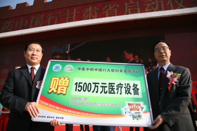 中國(guó)中醫(yī)藥報(bào)社副社長(zhǎng)王華章代表組委會(huì)向甘肅省捐贈(zèng)醫(yī)療設(shè)備(攝影 喬建安)