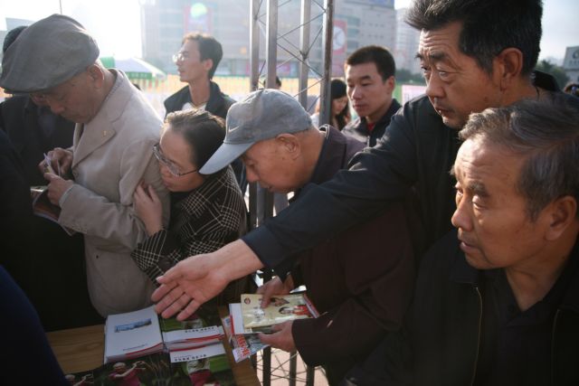 啟動(dòng)儀式現(xiàn)場(chǎng)群眾踴躍索取宣傳資料(攝影 喬建安)