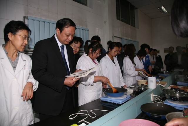 王國強(qiáng)副部長兼局長考察省中醫(yī)學(xué)校中藥炮制實(shí)驗(yàn)課情況(攝影 喬建安)