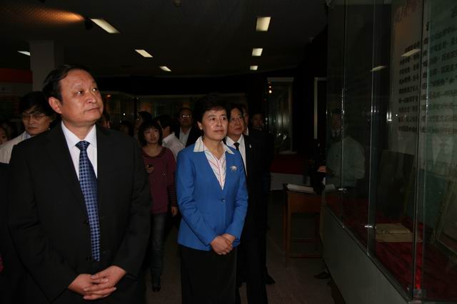 王國強(qiáng)副部長兼局長在咸輝副省長(左二)陪同下,視察甘肅中醫(yī)學(xué)院醫(yī)史館(攝影 喬建安)