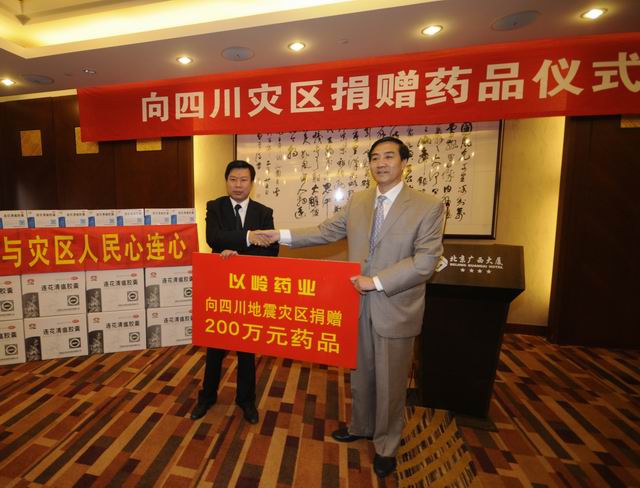各位來賓、各位新聞界的朋友: 大家上午好! 四川汶川特大地震災害牽動著億萬中國人民的心,也牽動著全體中醫藥工作者的心。今天,我們在這里舉辦“向地震災區捐贈藥品儀式”,是中醫藥界" />