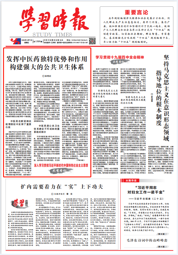 學(xué)習(xí)時(shí)報(bào)刊登余艷紅文章:發(fā)揮中醫(yī)藥獨(dú)特優(yōu)勢(shì)和作用 構(gòu)建強(qiáng)大的公共衛(wèi)生體系