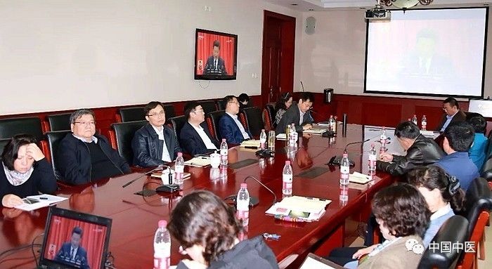 國家中醫藥管理局組織集中收看大會開幕會。 馬更/攝