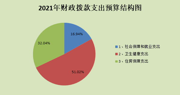 2021年收支總預算2169.02萬元。收入包括:一般公共預算撥款收入、事業收入、其他收入;支出包括:社會保障和就業支出、衛生健康支出、住房保障支出。