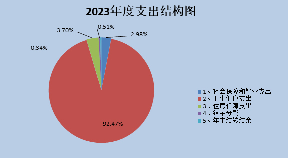 社會保障和就業支出120.17萬元,占2.98%;衛生健康支出3723.31萬元,占92.47%;住房保障支出148.93萬元,占3.7%;結余分配20.32萬元,占0.51%;年末結轉結余13.69萬元,占0.34%。