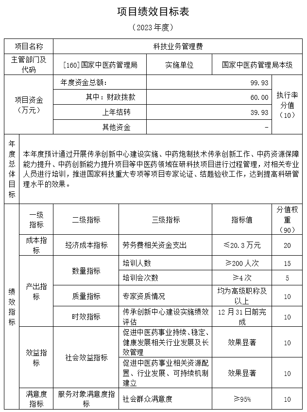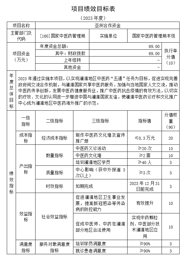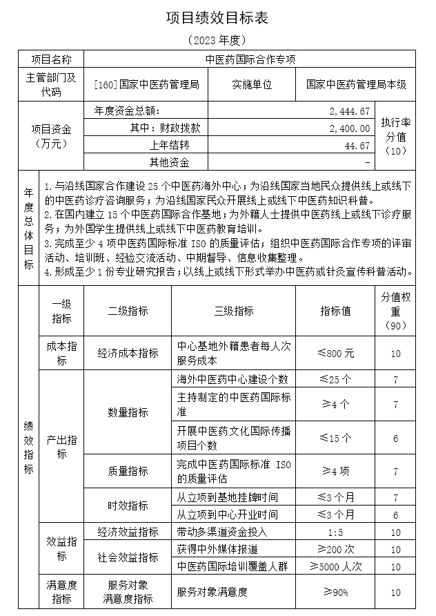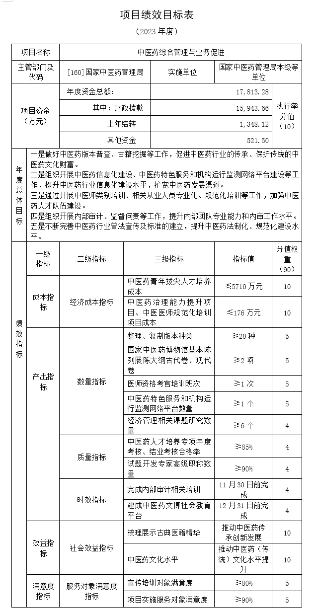 2023年對國家中醫藥管理局項目支出全面實施績效目標管理,涉及預算撥款142396.97萬元,其中,涉及一般公共預算撥款141696.97萬元、國有資本經營預算撥款700萬元。根據以前年度績效評價結果,優化中央所屬(管)醫院服務能力建設等項目支出2023年預算安排,并進一步改進管理、完善政策。