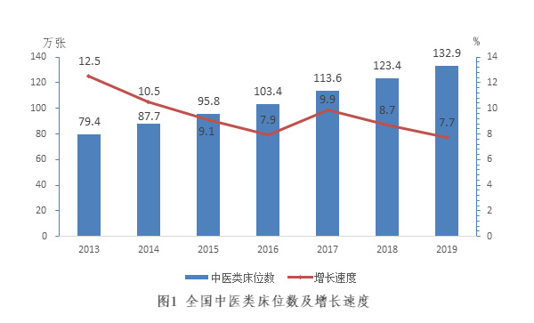 2019年全國中醫類床位總數為1,092,166張,比2018年的1,022,096張增加了70,070張,增幅達6.9%。目前,中醫類床位總數占全國總床位數的15.1%,高于2018年的14.7%。(見圖1)。
