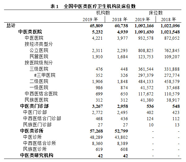 1. 中醫類醫療衛生機構包括中醫、中西醫結合、民族醫的醫院、門診部、診所及科研機構。