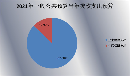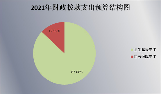 2021年財政撥款收支總預算1140.9萬元。收入全部為一般公共預算撥款,無政府性基金預算撥款,無國有資本經營預算撥款,包括:一般公共預算當年撥款收入1140.9萬元;支出包括:衛生健康支出993.5萬元、住房保障支出147.4萬元。