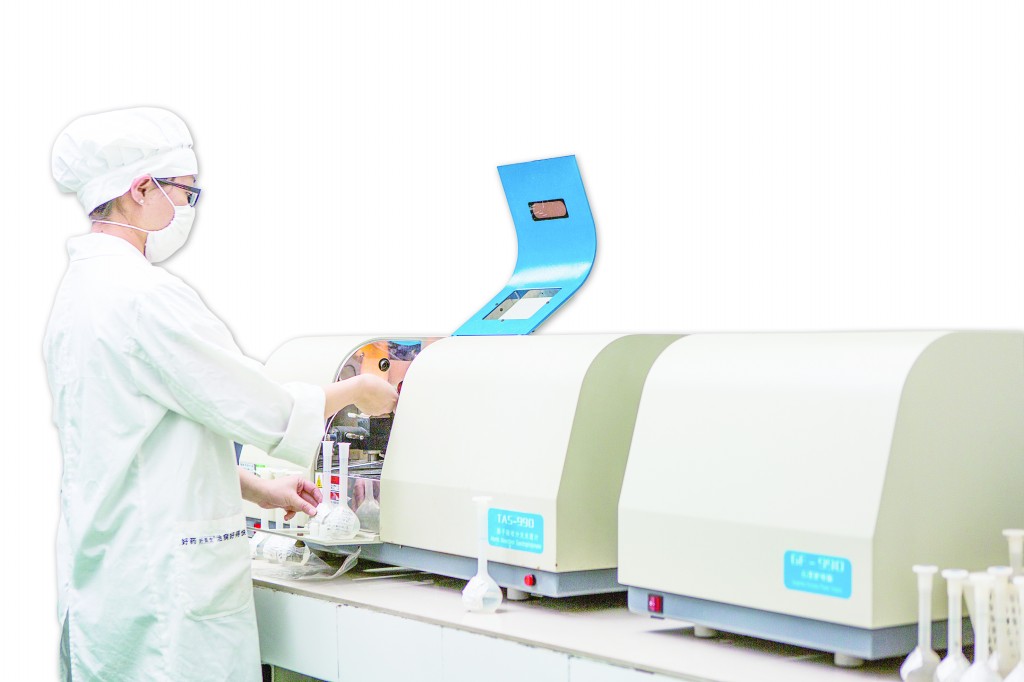好醫生藥業工作人員正在進行產品質量檢驗。