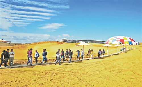 內蒙古鄂爾多斯市響沙灣是國內首個沙漠旅游度假景區,這里沙丘連綿不絕,一望無際。2011年響沙灣被評為國家5A級旅游景區,每年吸引眾多中外游客前來游玩。本報記者 翟天雪攝
