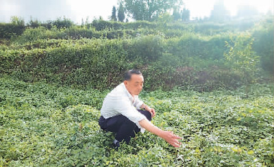 金融扶貧的過程中,去田間地頭定期查看項目情況成為了銀行人的必修課。圖為中國農業銀行盤州市支行“三農”客戶經理蒙庭莊在大地頭合作社查看中藥材生長情況。