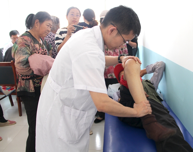 中國中醫(yī)科學院望京醫(yī)院醫(yī)生何名江正在為村民診療。