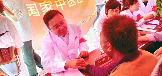 西苑醫院皮膚科副主任醫師付中學忍著發燒為患者義診。
