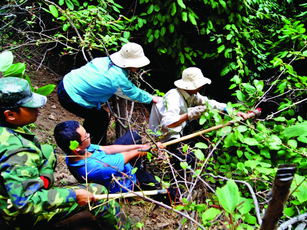 事實(shí)上,普查中遇到風(fēng)雨是常事。雨后山林泥土松散,背著普查工具的隊(duì)員們?cè)谶@種環(huán)境中隨時(shí)都可能摔跤,大家常常相互攙扶,攀著樹枝、藤蔓一步步前行……盡管條件艱險(xiǎn),隊(duì)員們卻“苦”并快樂(lè)著,因?yàn)樗麄冊(cè)谧鲆患饬x深遠(yuǎn)的大事。