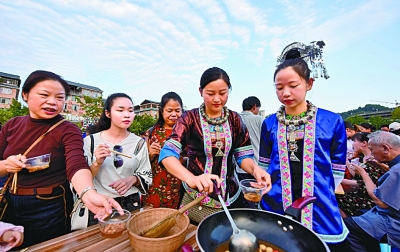 廣西三江縣舉辦油茶文化節,吸引八方游客品嘗體驗。龔普康攝/光明圖片