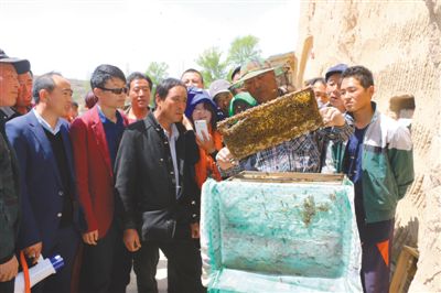 來到寧夏回族自治區(qū)固原市彭陽縣孟塬鄉(xiāng)小石溝村一戶農(nóng)家大院的時(shí)候,正趕上村黨支部副書記陳澤恩為鄉(xiāng)鄰傳授養(yǎng)蜂技術(shù),互動(dòng)環(huán)節(jié),大家嘰嘰喳喳,好不熱鬧。“澤恩娃是大學(xué)生,有闖勁,他回鄉(xiāng)帶大家養(yǎng)殖中華蜂,土蜂蜜品牌名聲響得很。我老伴是二度重殘疾,以前靠吃低保過日子,現(xiàn)在養(yǎng)了15箱蜂,純收入有一萬多元呢。”60多歲的王志孝露出憨憨的笑容。在陳澤恩的帶動(dòng)下,村里122戶貧困戶養(yǎng)蜂1144箱,人均增收2000元以上。小石溝,這個(gè)不起眼的小山村,已成為遠(yuǎn)近聞名的“甜蜜谷”。