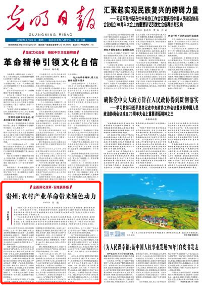 就在今天,貴州同時登上《光明日報》《經濟日報》兩家中央媒體頭版,這兩家媒體均用較大篇幅關注貴州如何大力推進農村產業結構調整,讓綠水青山間種出“搖錢樹”。