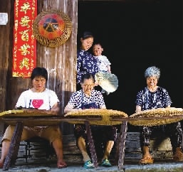 農(nóng)民在家門(mén)口搟茶。彭國(guó)興 攝