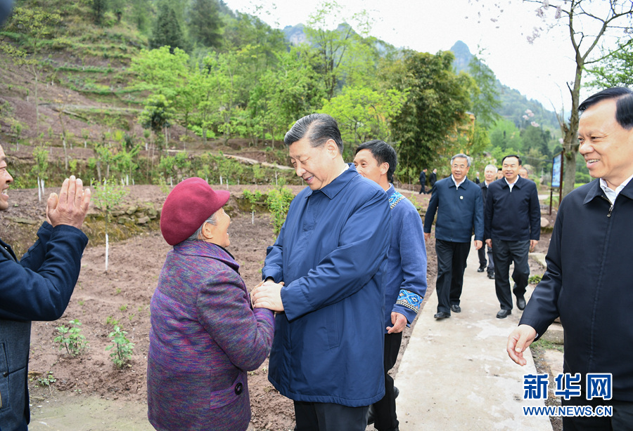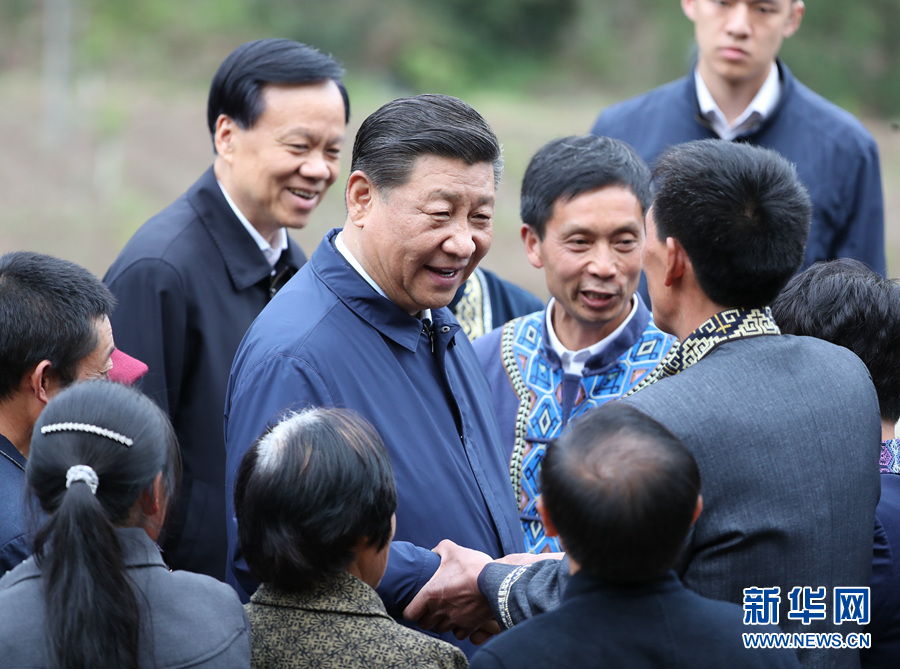 4月15日至17日,中共中央總書記、國家主席、中央軍委主席習近平在重慶考察,并主持召開解決“兩不愁三保障”突出問題座談會。這是4月15日下午,習近平在石柱土家族自治縣中益鄉(xiāng)華溪村同村民親切交流。 新華社記者 丁海濤 攝