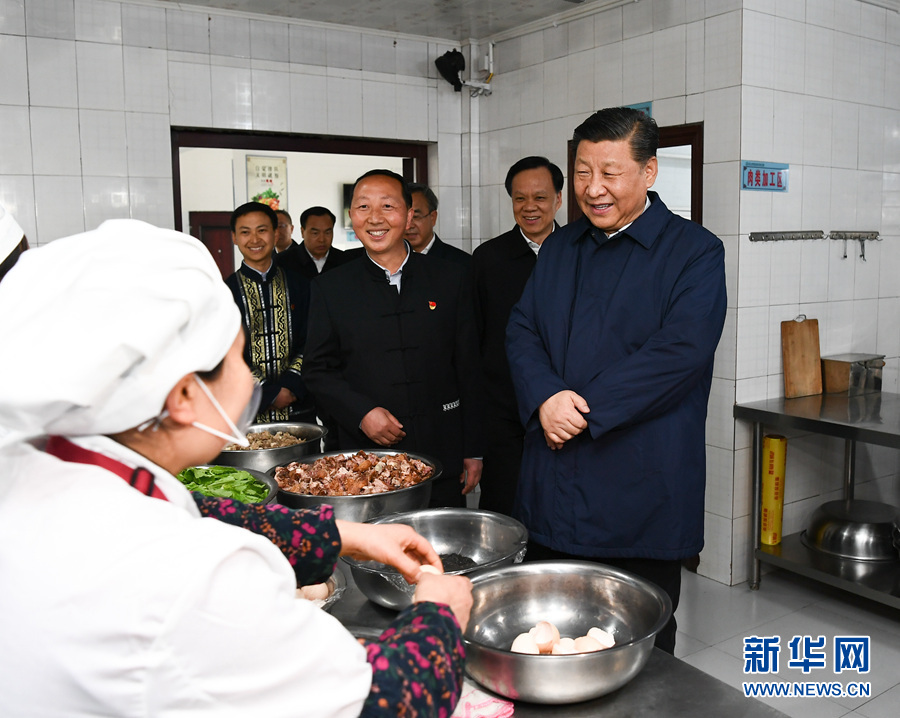 4月15日至17日,中共中央總書記、國家主席、中央軍委主席習近平在重慶考察,并主持召開解決“兩不愁三保障”突出問題座談會。這是4月15日下午,習近平在石柱土家族自治縣中益鄉(xiāng)小學走進師生食堂,了解貧困學生餐費補貼和食品安全衛(wèi)生情況。 新華社記者 謝環(huán)馳 攝