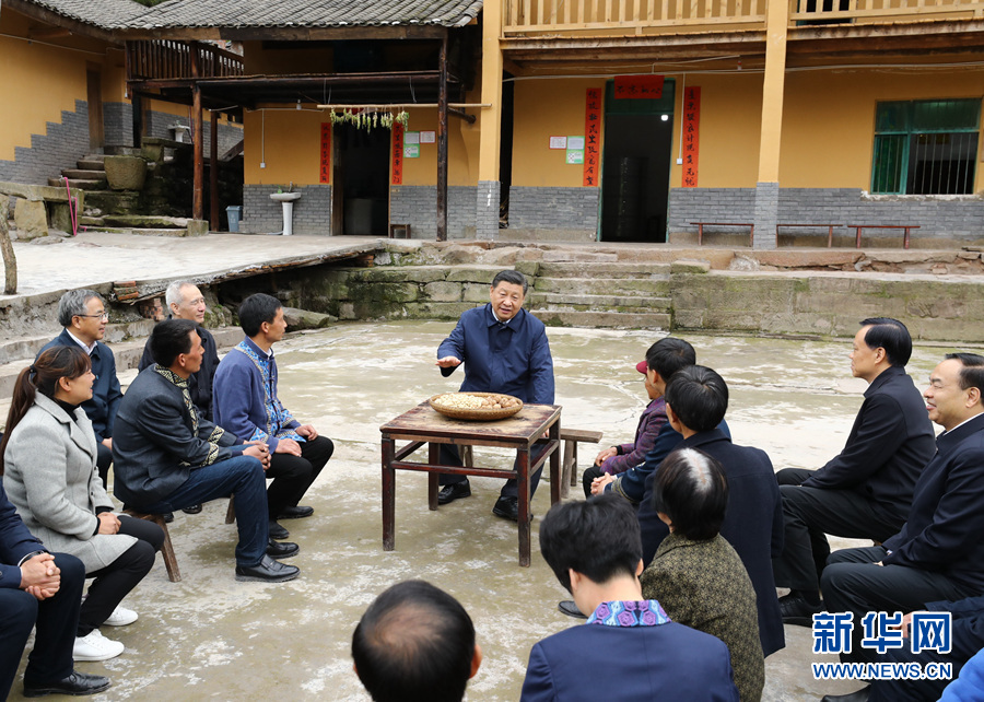 4月15日至17日,中共中央總書記、國家主席、中央軍委主席習近平在重慶考察,并主持召開解決“兩不愁三保障”突出問題座談會。這是4月15日下午,習近平在石柱土家族自治縣中益鄉(xiāng)華溪村看望貧困戶譚登周一家。 新華社記者 劉彬 攝