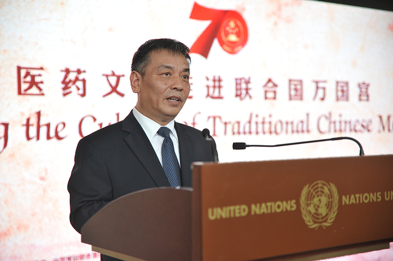 2019年9月24日,為慶祝中華人民共和國成立七十周年,由中國常駐聯合國日內瓦代表團、國家中醫藥管理局和聯合國日內瓦辦事處共同主辦,世界針灸學會聯合會、中國—瑞士(日內瓦)中醫藥中心承辦,國內多家中醫藥大學和瑞士相關醫學機構協辦的“中醫藥文化走進聯合國萬國宮”活動在萬國宮隆重開幕。中國常駐聯合國日內瓦代表陳旭大使、國家中醫藥管理局副局長閆樹江、聯辦文化委員會主席皮薩諾、中國常駐世界貿易組織代表張向晨大使、裁軍事務大使李松、世界衛生組織等國際組織官員、各國駐日內瓦使節、當地華僑華人、各界友好人士約500人參加。