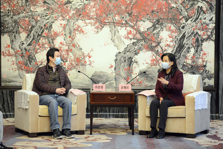 2020年3月13日上午,國家衛生健康委黨組成員、國家中醫藥管理局黨組書記余艷紅在武漢會議中心會見香港特區政府駐武漢經濟貿易辦事處主任馮浩賢,介紹內地中醫藥參與新冠肺炎疫情防控工作進展,了解需求,向港澳相關機構捐贈了一批用于防控新冠肺炎疫情的中成藥,攜手共同推進疫情防控工作。