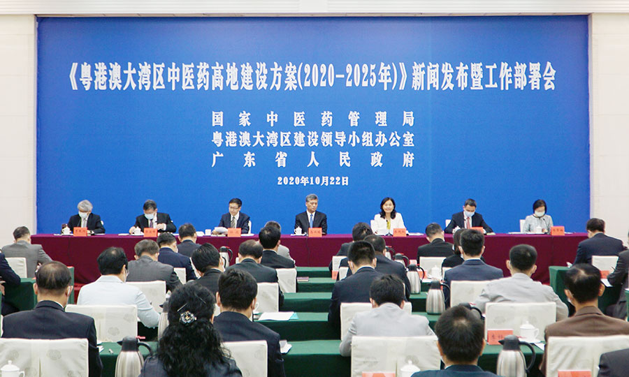 2020年10月22日,國家中醫藥管理局、粵港澳大灣區建設領導小組辦公室和廣東省人民政府聯合在廣州召開《粵港澳大灣區中醫藥高地建設方案(2020-2025年)》新聞發布暨工作部署會。國家衛生健康委黨組成員、國家中醫藥管理局黨組書記余艷紅,國家發展改革委副秘書長郭蘭峰,廣東省人民政府省長馬興瑞出席會議并先后講話。廣東省人民政府副省長李紅軍出席會議。會議由國家中醫藥管理局黨組成員、副局長孫達主持。