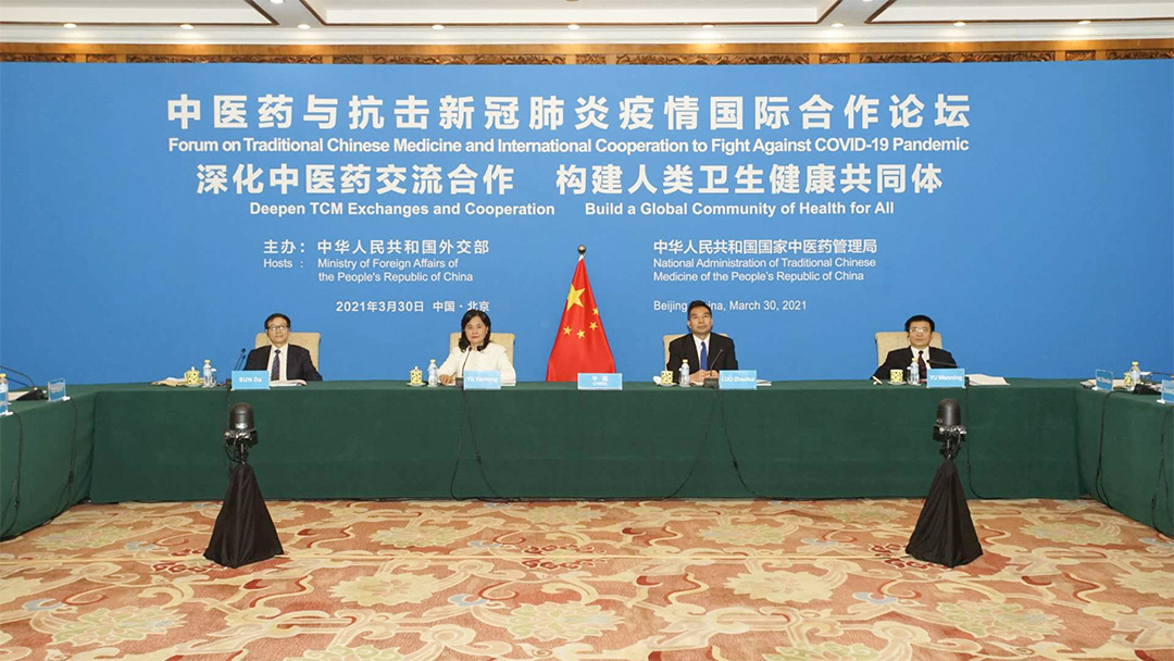 3月30日,外交部和國家中醫(yī)藥管理局以線上線下相結(jié)合的方式共同舉辦“中醫(yī)藥與抗擊新冠肺炎疫情國際合作論壇”。論壇以“深化中醫(yī)藥交流合作,構(gòu)建人類衛(wèi)生健康共同體”為主題,國務(wù)院副總理孫春蘭發(fā)表視頻致辭,津巴布韋總統(tǒng)姆南加古瓦,烏克蘭副總理斯特凡妮希娜,世界衛(wèi)生組織傳統(tǒng)、補充與整合醫(yī)學部主任張奇向論壇致辭,外交部副部長羅照輝,國家衛(wèi)生健康委黨組成員、國家中醫(yī)藥管理局黨組書記余艷紅,局長于文明,副局長孫達,有關(guān)部委代表,及28個國家和地區(qū)政府部長、官員代表、專家110人出席了論壇。余艷紅主持開幕式。