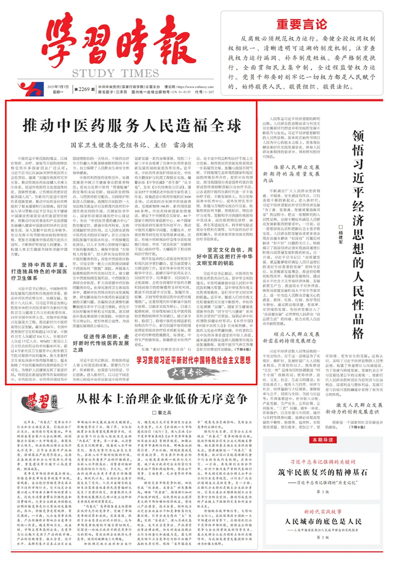 中醫藥是中華民族的瑰寶,以其在預防、治療、康復等方面的獨特優勢受到許多國家民眾廣泛認可。習近平總書記向2024世界傳統醫藥大會致賀信,強調“加強傳統醫藥互學互鑒,推動傳統醫藥深度融入全球衛生體系,促進傳統醫藥文化創造性轉化、創新性發展,讓傳統醫藥更好造福各國人民”,為新時代促進中醫藥傳承創新發展,推動中醫藥走向世界提供了根本遵循和行動指南。我們要深入學習貫徹習近平總書記關于健康中國建設的重要論述和重要賀信精神,將推動中醫藥事業和產業高質量發展融入健康中國建設和經濟社會發展全局,深入發掘中醫藥寶庫精華,充分發揮中醫藥防病治病的獨特優勢,更加主動服務中國式現代化偉大進程,不斷維護和促進人民健康,為構建人類衛生健康共同體貢獻中國力量。