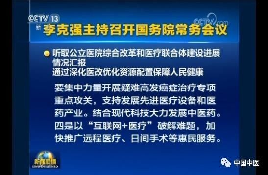 李克強(qiáng)主持召開(kāi)國(guó)務(wù)院常務(wù)會(huì)議,聽(tīng)取公立醫(yī)院綜合改革和醫(yī)療聯(lián)合體建設(shè)進(jìn)展情況匯報(bào), 要求通過(guò)深化醫(yī)改優(yōu)化資源配置保障人民健康,部署進(jìn)一步做好基本醫(yī)保全國(guó)聯(lián)網(wǎng)和異地就醫(yī)直接結(jié)算工作,減少群眾后顧之憂更多惠及人民。會(huì)議指出要結(jié)合現(xiàn)代科技,大力發(fā)展和應(yīng)用中醫(yī)藥。
