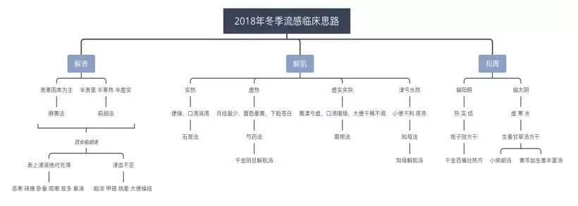 此次流感,很多患者發熱、惡寒比較明顯,或伴眼瞼紅鮮,肢體酸沉困痛,代表人體表位的津血充滯明顯;同時下肢襪痕,目下臥蠶,咳嗽,痰多,鼻涕,噴嚏,為上焦和人體的表位充滯著風寒和水飲,類似“溢飲”“風水”,這種情況是麻黃劑的應用范疇。本次流感,解表往往多選麻黃劑或者麻黃配前胡;而里的層面,此次患流感的患者在病程中常伴有口干口苦,甚至口渴飲多,部分患者伴有大便秘結、小便頻或者大便稀溏的表現。若用麻桂攻表,則可能加重里熱,使熱勢反復。這就要求我們細分在里津液的虛實、寒熱,靈活選用適合體內津液狀態的方法,使表邪得以充分透解,而不至于加重里虛或者里熱的情況。