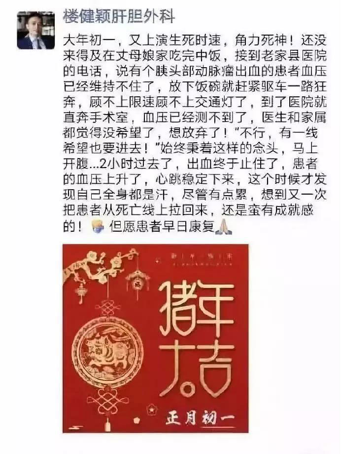 大年初一,正在丈母娘家拜年的浙江諸暨市中醫(yī)院樓健穎接到電話:一73歲老人大出血不止,要緊急搶救!他扔下筷子,20分鐘趕到浙江諸暨市中醫(yī)院。搶救3個(gè)多小時(shí),救回老人。手術(shù)結(jié)束,他才匆匆跑回家和家人團(tuán)聚。