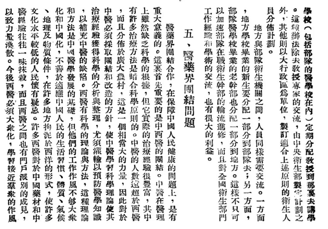 新中國成立初期,與高發病率和高死亡率反差極大的是,全國正式西醫僅有2萬人。這提醒人們,僅僅依靠西醫改善新中國的醫療條件和衛生狀況是不可能的,2萬西醫必須與扎根本土的50萬中醫團結起來,共克時艱。