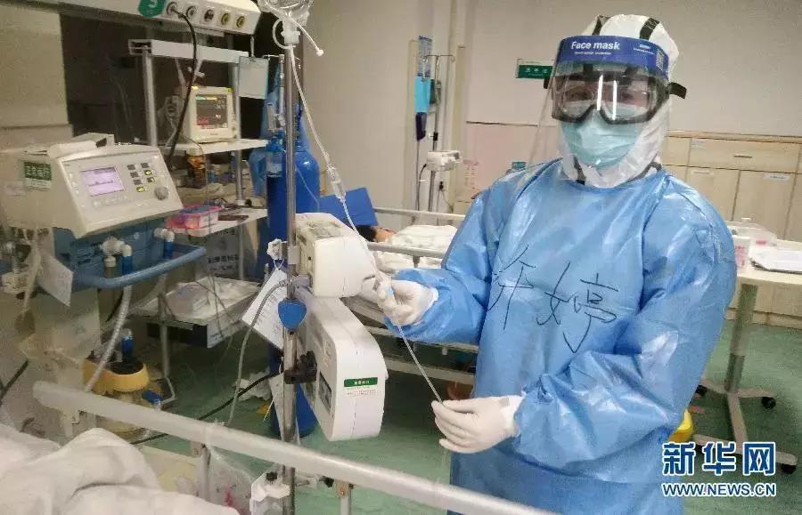 在武漢市第九醫院重癥監護室,共產黨員、西安市胸科醫院ICU主管護師許婷在工作(2月1日攝)。新華社發