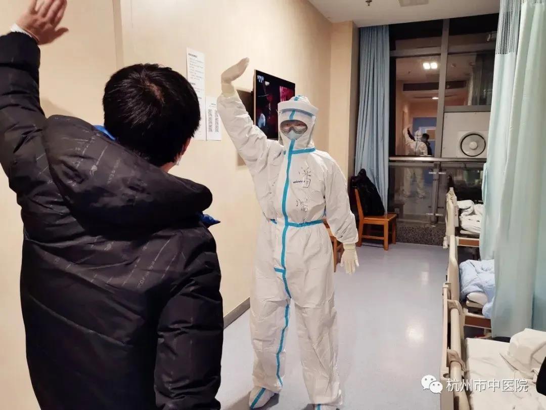 今天進入隔離病房后,我跟往常一樣,交班、巡視病房、發飯、測量生命體征、打針輸液、觀察病情。唯一不同的是,今天打了段八段錦。