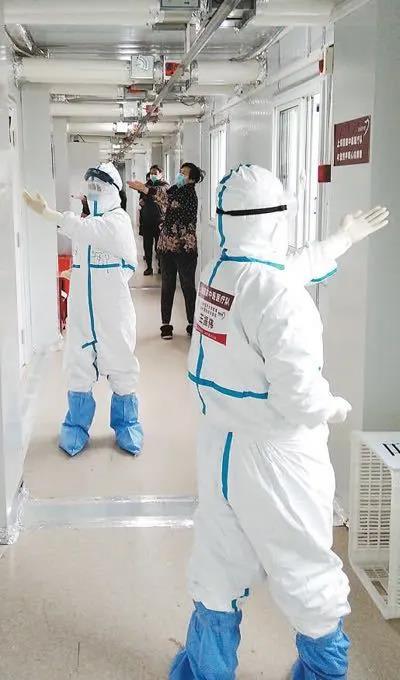 武漢雷神山醫(yī)院,上海支援湖北醫(yī)療隊(duì)的醫(yī)護(hù)人員在教患者按照“六字訣”中醫(yī)功法進(jìn)行鍛煉。