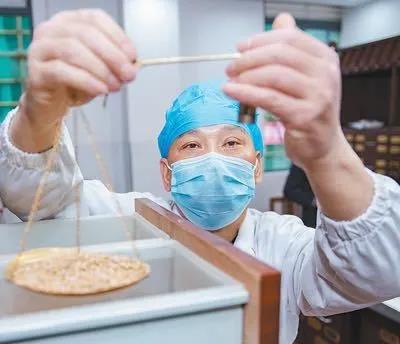 3月2日,福建省泉州市德化縣醫(yī)院的中藥師在根據(jù)處方調(diào)配中藥。