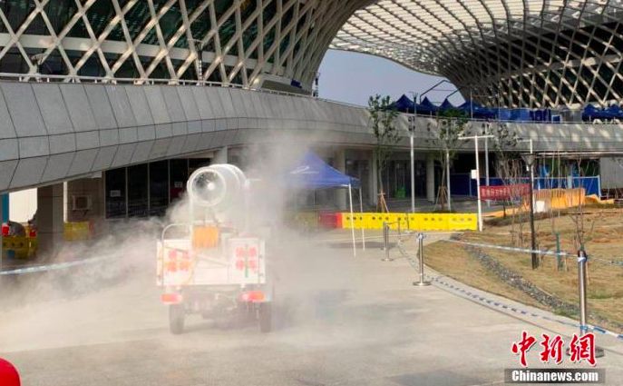 江夏方艙醫院正在進行休艙前的消殺工作。