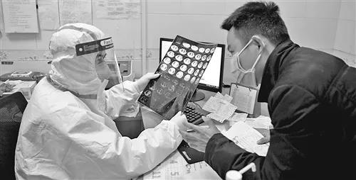 在武漢中南醫(yī)院發(fā)熱門診,胡衛(wèi)東醫(yī)生為患者看病。本報記者 高興貴攝