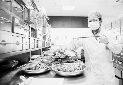 圖為工作人員在內蒙古自治區中醫醫院藥房根據處方抓藥。新華社發