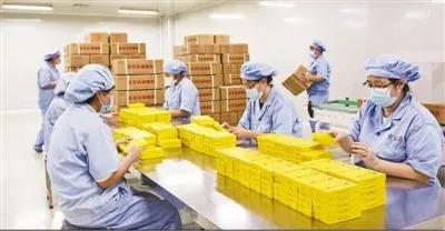 圖為4月28日,在聚協(xié)昌(北京)藥業(yè)有限公司位于北京市大興區(qū)采育經(jīng)濟(jì)開發(fā)區(qū)的生產(chǎn)車間里,工人們正在檢查一批金花清感顆粒的包裝。