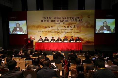 2008年11月29日,由國家中醫藥管理局、浙江省衛生廳和浙江省中醫藥管理局共同主辦的“治未病”高峰論壇系列專題講壇—“體質-肺/大腸-易發疾病群防治專題講壇”在杭州成功舉辦。 衛生部副部長、國家中醫藥管理局局長王國強發表了主旨講話。浙江省政府副省長鄭繼偉、總后衛生部副部長袁永林參加本次講壇啟動儀式并致辭。浙江省衛生廳廳長楊敬就浙江省“治未病”工作的有關進展和成效作了主題發言。中國科學院院士陳凱先、全國著名老中醫何任及有關專家,就治未病與醫學目的調整和醫學模式的改變,體質臟腑功能與人得健康狀態,個體人的健康狀態分類與風險管理及其在健康管理中的應用,KY3H健康保障服務等作了專題宣講。來自中國科學院、浙江中醫藥大學、上海中醫藥大學、浙江省中醫院、杭州師范大學及上海岳陽中西醫結合醫院等單位的專家,就肺與大腸易發疾病的本質與演變規律,肺癌、哮喘、慢性阻塞性肺炎、過敏性鼻炎、銀屑病等肺與大腸易發疾病防治的KY3H健康保障服務作了專題講座。同時,還就KY3H治未病中心的服務模式、健康醫院的建設實踐、治未病健康保障服務的推廣、管理個體人健康狀態風險的服務產品等作了專題發言。講壇還設立了現場展覽、演示和體驗活動,通過音像、文字、圖片資料以及實物等,使參加者了解 “治未病”背景與工作進展、相關科學研究和服務實踐成果、“治未病”的技術與產品等。 本期"講壇"由浙江省中醫院、中國中醫藥科技開發交流中心和昆侖健康保險公司、炎黃健康科技公司共同承辦,中華醫學會健康管理學分會、中華中醫藥學會、杭州師范大學醫學院、解放軍杭州療養院共同協辦。來自全國“治未病”試點單位及浙江省的醫療單位、高等院校、研究院所、健康管理機構、有關企事業單位、社會團體、功能社區等方面的有關人員,中央及浙江有關媒體的記者等共計300余人參加了本次講壇。(科技司)