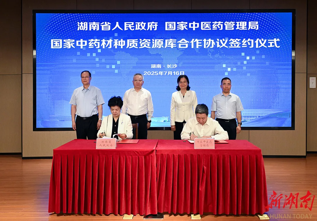 7月16日,湖南省人民政府與國家中醫(yī)藥管理局在長沙簽署共建國家中藥材種質(zhì)資源庫合作協(xié)議。湖南省委書記沈曉明,湖南省委副書記、省長毛偉明,國家衛(wèi)生健康委黨組成員、國家中醫(yī)藥管理局局長余艷紅見證簽約。