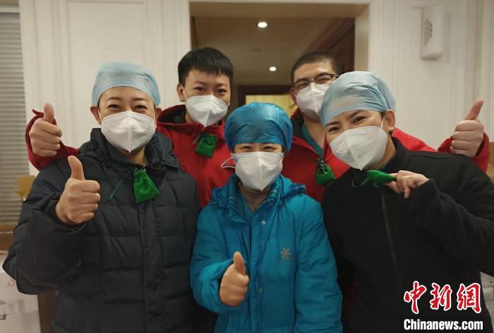 圖為馳援武漢醫(yī)療隊員將防疫蒙藥香囊“那格布九味散”送給當?shù)蒯t(yī)護人員。內蒙古國際蒙醫(yī)醫(yī)院供圖