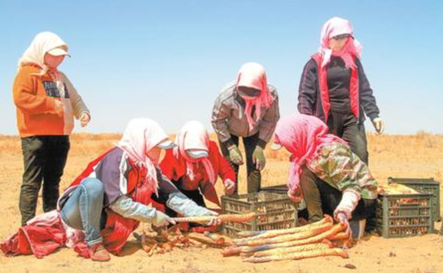 初冬時節,民勤縣蕓豐蓯蓉農民專業合作社員工正在采挖“沙漠人參”肉蓯蓉。