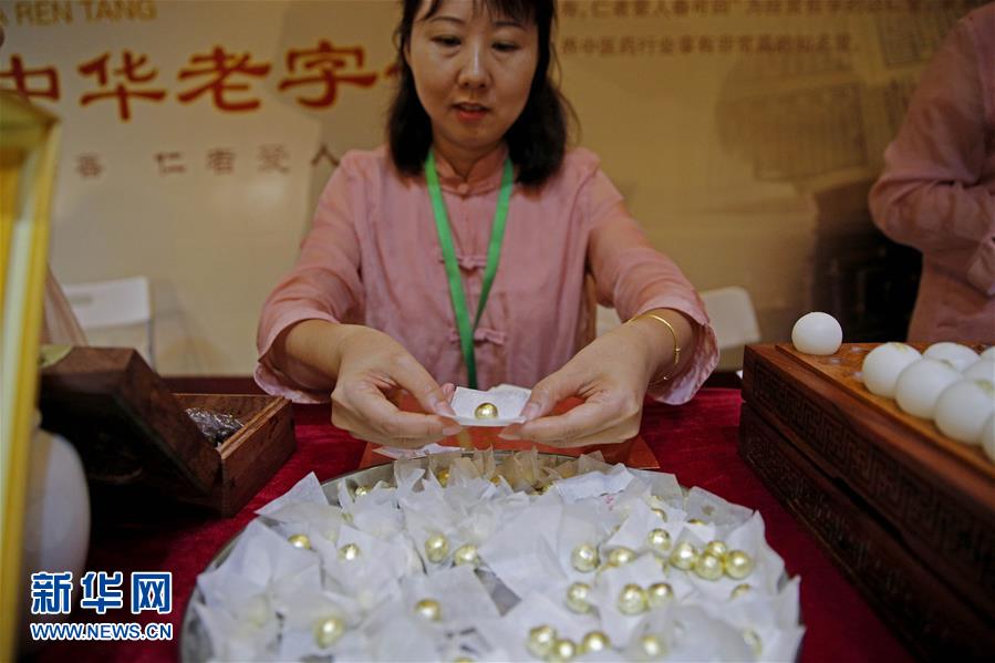 6月30日,工作人員在活動(dòng)現(xiàn)場(chǎng)向觀眾展示中藥“裹金衣”制作工藝。當(dāng)日,由中醫(yī)中藥中國(guó)行組委會(huì)、北京市人民政府主辦的“中醫(yī)中藥中國(guó)行——2018年中醫(yī)藥健康文化大型主題活動(dòng)”在京啟動(dòng)。健康咨詢、互動(dòng)體驗(yàn)、健康講座、科普資料發(fā)放……豐富多彩的活動(dòng)內(nèi)容,吸引了不同年齡段的人們前來(lái)參加體驗(yàn)。新華社記者 張玉薇 攝